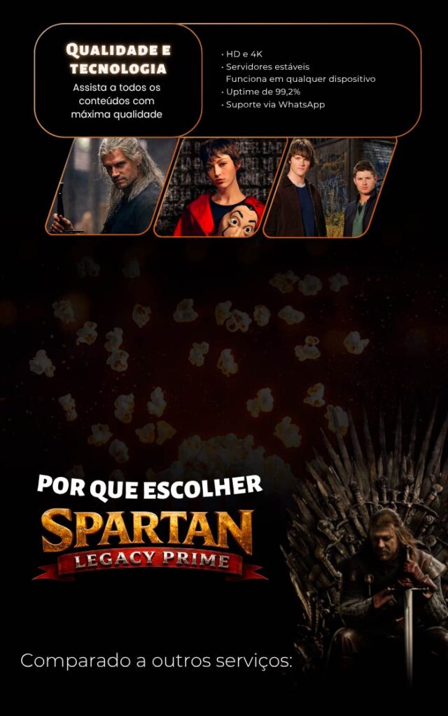 Simples: eles são lixo, nós somos profissionais. Aqueles IPTVs vagabundos de grupo de WhatsApp usam 1 servidor mixuruca que cai todo domingo no meio do jogo, qualidade que parece VHS dos anos 90, e “suporte” que some quando você precisa. Spartan Legacy Prime tem servidores distribuídos em 8 países com redundância automática (uptime 99,2%), qualidade HD/4K real testada, e suporte via WhatsApp que responde em 8 minutos. A diferença? Eles querem seu dinheiro rápido e desaparecer. Nós reinvestimos mensalmente em infraestrutura porque nosso negócio é retenção, não golpe. Por isso temos menos de 2% de cancelamento enquanto aqueles IPTVs baratos têm clientes furiosos toda semana reclamando em grupo. Você escolhe: amadorismo barato que te frustra ou profissionalismo que funciona?